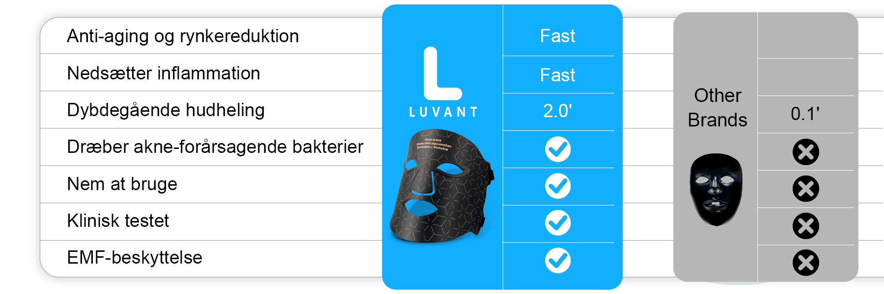 Derfor er hver eneste funktion i Luvant LED-masken – fra det intelligente, håndfri design til den målrettede fototerapi og den behagelige silikonepassform – skræddersyet til dig. Det er ikke kun et skønhedsredskab, men din personlige »glow-restorer«, der hjælper dig med at forvandle din hud uden besvær og genvinde din udstråling. Vælg Luvant LED-masken for at nyde hvert øjeblik af selvpleje uden besvær.
